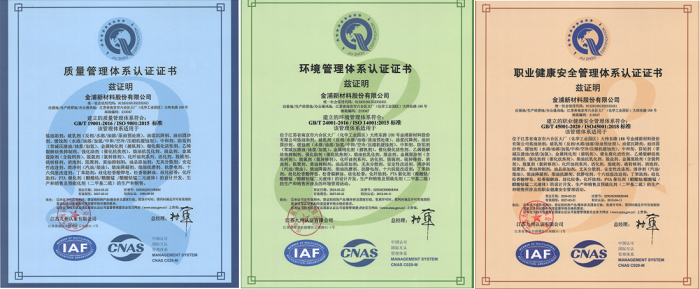 通過此次再認證審核,金浦新材公司將在今后的工作中一如既往的嚴格執行質量管理體系、職業健康管理體系、環境管理體系及規章制度,進一步優化和規范各項管理制度,不斷提高體系運行的有效性,不斷進行積極探索,努力使金浦新材公司管理體系工作上升到新高度,實現全面的科學管理。